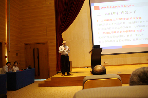 關(guān)于線(xiàn)上與線(xiàn)下的業(yè)務(wù)運(yùn)營(yíng)開(kāi)發(fā)。首先,有福網(wǎng)渠道經(jīng)理趙基為大家展示了多種線(xiàn)上渠道開(kāi)發(fā)和推廣引流模式;其次,唯企悅陳萬(wàn)平先生提出打造快印定制超市概念,賦予快印門(mén)店全新的服務(wù)理念;最后,線(xiàn)下門(mén)店方面六九快印總經(jīng)理曾中輝表示將執(zhí)行“有賺就干”的戰(zhàn)略,即以量變引發(fā)質(zhì)變的經(jīng)營(yíng)模式,提高門(mén)店的產(chǎn)值。